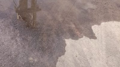 Permukaannya lembut, bergelombang, dan tidak rata. Genangan air menggenang di beberapa titik saat hujan. Kondisi ini mengindikasikan ketidakseriusan pelaksanaan.